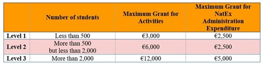 There are two types of grant, one for PL activities for teachers and one to support the executive functions of the TGA. The levels are determined by the number of students taking exams or programme.